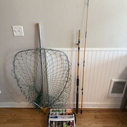 Fishing rod Tackle box and salmon net$60Tigard, OR
