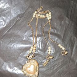 Romantic 1928 faux pearl heart shaped locket "8 inch chain with vanity faux pearls$40Portland, OR