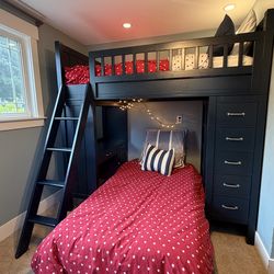 Pottery Barn Navy Twin Loft/Bunk Bed Set, desk, shelves, drawers + all the extras$1,500Woodway, WA