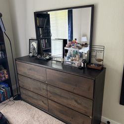 Dark wood dresser with mirror. 6 drawers$300Bothell, WA