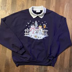 Vintage 90s Morning Sun Snowman Double Collar Sweatshirt - Navy Blue L$35Seattle, WA