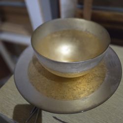 This is a mid-century Italian gold and silver leaf glass bowl and tray set. $100Naches, WA
