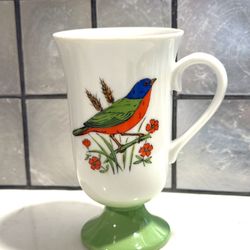 Vintage Fred Roberts Songbird Pedestal Mug Cup double sided Featuring a beautiful, colorful, bird and wildflowers 5” tall $10Tacoma, WA