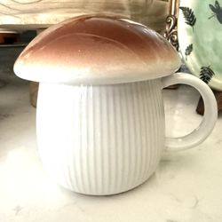 Cutest Mushroom Lidded Ceramic Mug Ribbed White Ceramic Mug with Brown Mushroom Cap $13Tacoma, WA