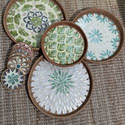 Round Rattan Tray with Mother of Pearl Inlay$50Puyallup, WA