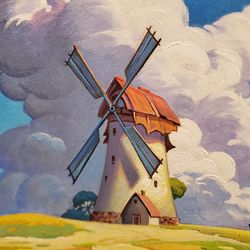 Original Acrylic Painting. Miyazaki anime style. Windmill, Clouds, Warm Golden Field$400Puyallup, WA