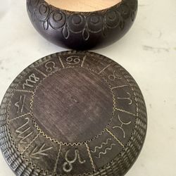 Vintage Hand Carved Zodiac Symbols Wood Trinket Box with Lid Tatra Wood Made in Poland Approx 4" X 2 A treasured gift created by the Highlanders of $22Tacoma, WA