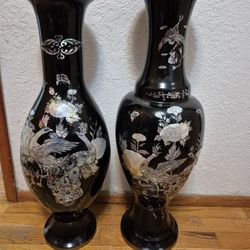 Mother Of Pearl Black Lacquer Asian Vases And Stands (Please Read Description Below)$50Steilacoom, WA