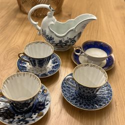 Vintage Blue & White Porcelain Teacups & Saucers Set + Creamer$100Gig Harbor, WA