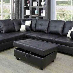 Black Microfiber Sectional Couch And Storage Ottoman$650Puyallup, WA