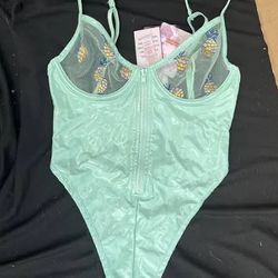 SAVAGE X FENTY LIQUID LATEX THONG BODYSUIT WITH FLORAL LACE CUPS IN MINTY TEAL COLOR SIZE XXL HOLD FOR NICKC$40Tumwater, WA