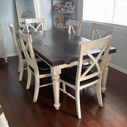 White Farmhouse Dining Table And 6 Chairs/ Butcher Block Style/Heavy Solid Oak Wood/Country/Rustic/Distressed/Shabby/Leaf/Extension/Stretch/Set/Rare$300Tacoma, WA