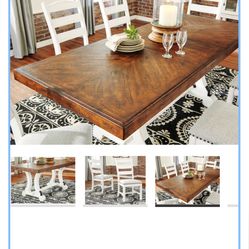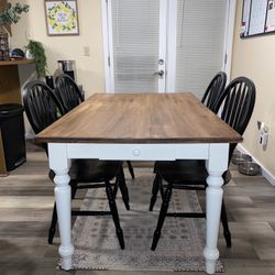 Farmhouse Dining Table And 6 Chairs/White/Oak/Solid Wood/Country/Rustic/Shabby Style/Rare/Delivey/Dining Room/Kitchen/Cabin/ Bench/Windsor /Ashley$275Tacoma, WA
