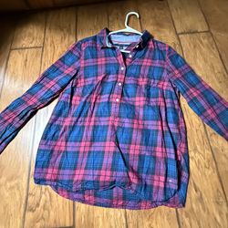 Tommy Hilfiger flannel button-down shirt featuring a pink and blue plaid pattern Large on tag Very good condition Smoke free home$13Tacoma, WA
