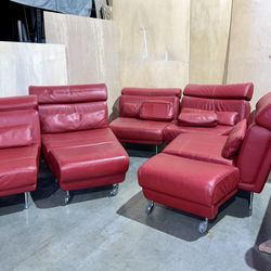 Red Leather Sectional Couch Set And Ottoman$650Federal Way, WA