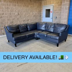 Navy Blue Real Leather L Sectional Couch Sofa (DELIVERY AVAILABLE! 🚛💨)$950Dupont, WA