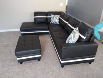 Brand New Black Leather Sectional With A Reversible Chaise & Matching Footrest$380Spanaway, WA