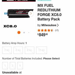 MX Fuel Redlithium Forge XC8.0 Battery Pack$450Green Bay, WI