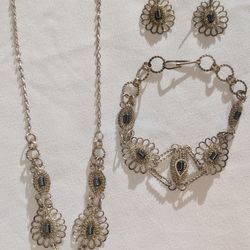 Stauer Gold Tone Filigree Black Jewelry Set Necklace Bracelet Earrings W/ Pouch$80Green Bay, WI