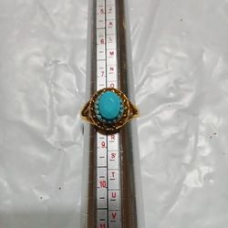 Size 8 Turquoise And Gold Costume Gem Ring$6Forest Junction, WI