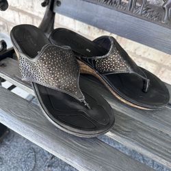 Dr. Scholls Cork Wedge Black Perforated Thong Sandal Vegan Size 9 | approx 2.75” heel$8Baraboo, WI