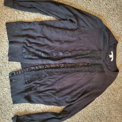 Womens 2XL Rafaella black 3/4 sleeve black cardigan with tatted lace around neck Lot 10$2Janesville, WI