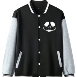 Skeleton Jack Plus Size Varsity Jacket with Funnel Neck and Pocket $35Madison, WI