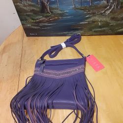 New with Tag Vieta Purple Fringed Rhinestone Crossbody Purse Faux Leather with back pocket $20 Firm$20Milwaukee, WI