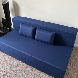 Queen-sized navy blue cushion sofa/bed$50Madison, WI