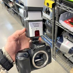 Canon EOS 750QD film camera with an Emoblitz DS328AZ flash unit attached. $60Milwaukee, WI