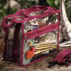 PERSONALIZED CLEAR LUNCH BOX OR STADIUM BAG MUA MAKE UP COSMETICS SHOULDER STRAP CARRY CASE WITH PURPLE LINER$19Brookfield, WI