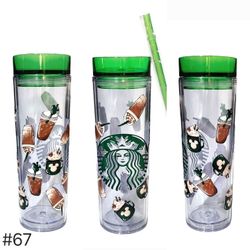 Starbucks Acrylic Plastic Skinny Tumbler Cup 16oz Custom Design Green$18West Allis, WI