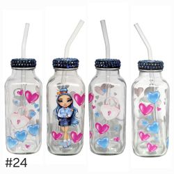 Hearts Clear Glass Bottle Cup 16 oz UV DTF Blue Pink Design Glass Straw$17West Allis, WI