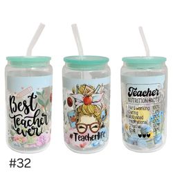 Best Teacher Clear Glass Tumbler Cup 16 oz UV DTF Blue Design Glass Straw$15West Allis, WI