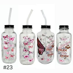 Butterfly Clear Glass Square Bottle Cup 16 oz UV DTF Pink Design Glass Straw$15West Allis, WI