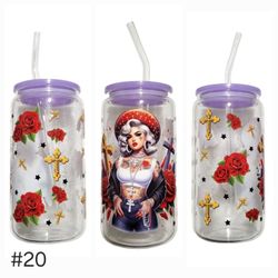 Karol G Clear Glass Tumbler Cup 16 oz UV DTF Design With Glass Straw$15West Allis, WI