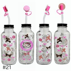 Hello Kitty Clear Glass Square Bottle Cup 16 oz UV DTF Pink Design Glass Straw$17West Allis, WI