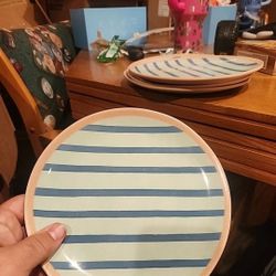 Threshold Summer Coastal Melamine 8.5” Salad Plates Blue Stripe Set Of 4$15West Bend, WI
