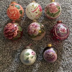 Hand Blown Glass Christmas Ornaments With Floral Pattern - Lot Of 8$20Vernon, WI
