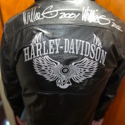 Autographed by "Willie G" Harley-Davidson men’s sz M/L black genuine leather 1/2 zip lined jacket$150Milwaukee, WI