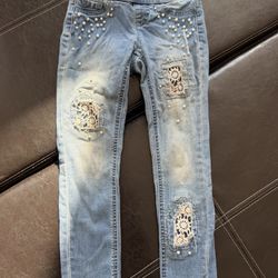 Justice - Girl’s Light Blue Jeans with Pearl and Lace Accents$6New Berlin, WI
