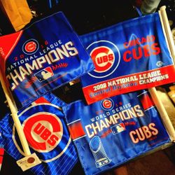 MLB, CHICAGO CUBS, 4 DIFFERENT FLAGS: COMES W/POLES, PRICE VARY $8-$13, TELL ME WHICH.$8Racine, WI