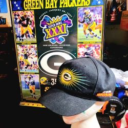 NFL, VINTAGE/RARE, SUPERBOWL CHAMPIONS XXXI, GREEN BAY PACKERS: pre-owned. (2× items) (1997) 16"×20", Champion Poster in plastic frame & adj cap, firm$40Racine, WI