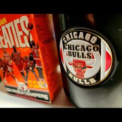 Chicago Bulls: (2) items. (1991) Empty Box, NBA World Champions, Mini-Wheaties & never used black ceramic 3-D Bulls Logo Coffee mug, firm.$13Racine, WI