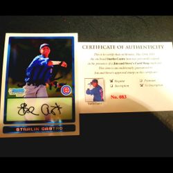 MLB, CHICAGO CUBS: (2008) STARLIN CASTRO, TOPPS CHROME, CERTIFICATE AUTHENTICITY, ROOKIE CARD, FIRM.$62Racine, WI