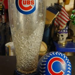 MLB, CHICAGO CUBS: 2 items. 10" plastic mug that can be frozen & Plush Cub ball, firm.$13Racine, WI