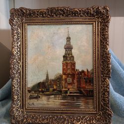 Antique Dutch Oil Painting On Canvas Of Montelbaars Toren Amsterdam Holland $500Brown Deer, WI