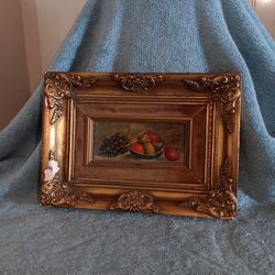 Jeanmarie Gallery Original French Oil Miniature Oil On Wood Board Vintage Fruit Still Life In Original Frame Signed Lower Left $300Milwaukee, WI