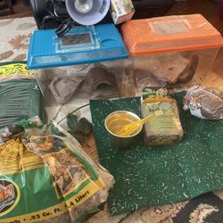 Set of 2 small plastic terrariums for small reptiles. Heat Lamp, Eco carpet & coconut fiber$30Milwaukee, WI