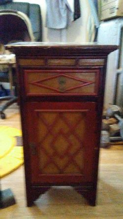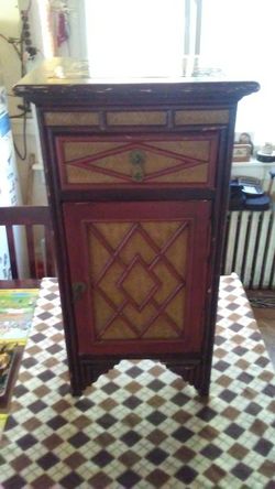 Its a antique small wooden cabinet with a unique poetry of birds out tile or marble.$65Milwaukee, WI